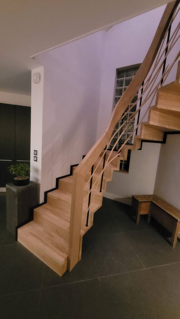 Apportez une touche de modernité et de fonctionnalité à votre maison avec les escaliers en bois dotés d’un éclairage LED de Sarl Joret à Gaillon. Ces escaliers innovants sont conçus pour améliorer à la fois l’esthétique et la sécurité de votre intérieur. L’éclairage LED intégré non seulement met en valeur les lignes élégantes de vos escaliers, mais offre également une visibilité accrue, essentielle pour les déplacements nocturnes. Sarl Joret propose une gamme variée de designs et de configurations LED qui peuvent être personnalisés en fonction de vos préférences et des caractéristiques de votre espace. Que vous préfériez une lumière douce et accueillante ou un éclat plus vif et contemporain, l’équipe de Sarl Joret vous guidera dans le choix de la solution parfaite. En choisissant un escalier en bois avec éclairage LED, vous investissez dans une option durable et économe en énergie qui transformera votre intérieur en un espace moderne et sécurisé.